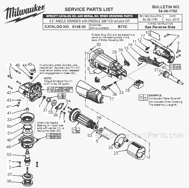 | Milwaukee | 2780-22HD | Angle Grinder - 2780-22hd (Serial F33c) M18 Fuel Angle Grinder With Paddle Switch And Lock-Off Parts |