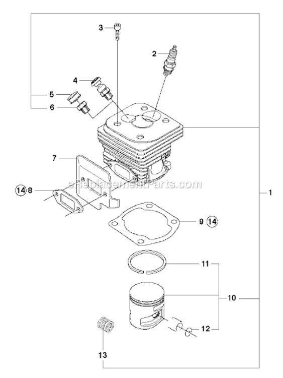 Part Location Diagram of 577207702 Husqvarna Piston Assembly