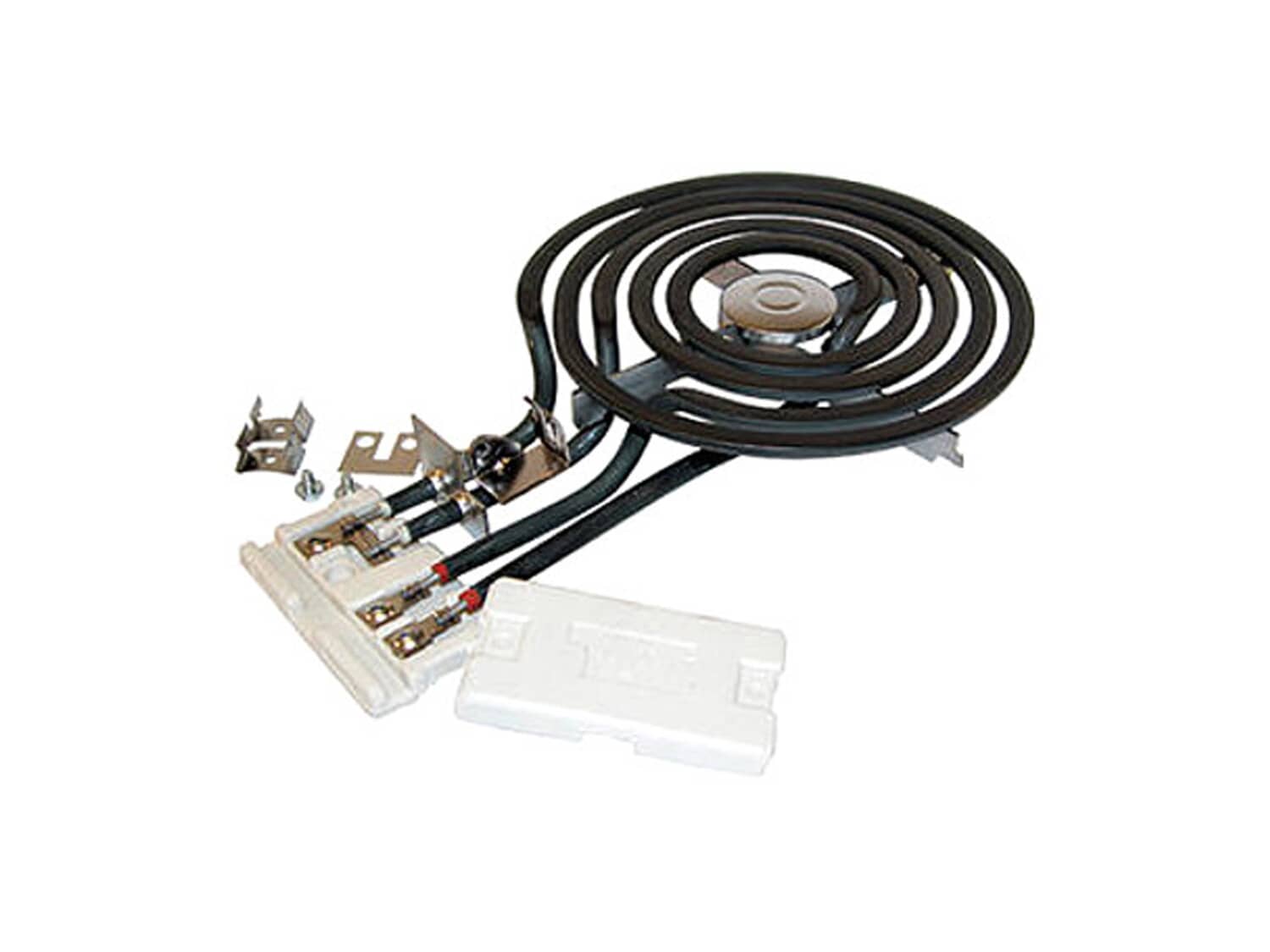 This tilt lock hinge mounted surface element kit includes a 6 inch, three wire, 1350 watt surface element, and a terminal block with all three-wire units. These high rise elements do not come with an attached trim ring.