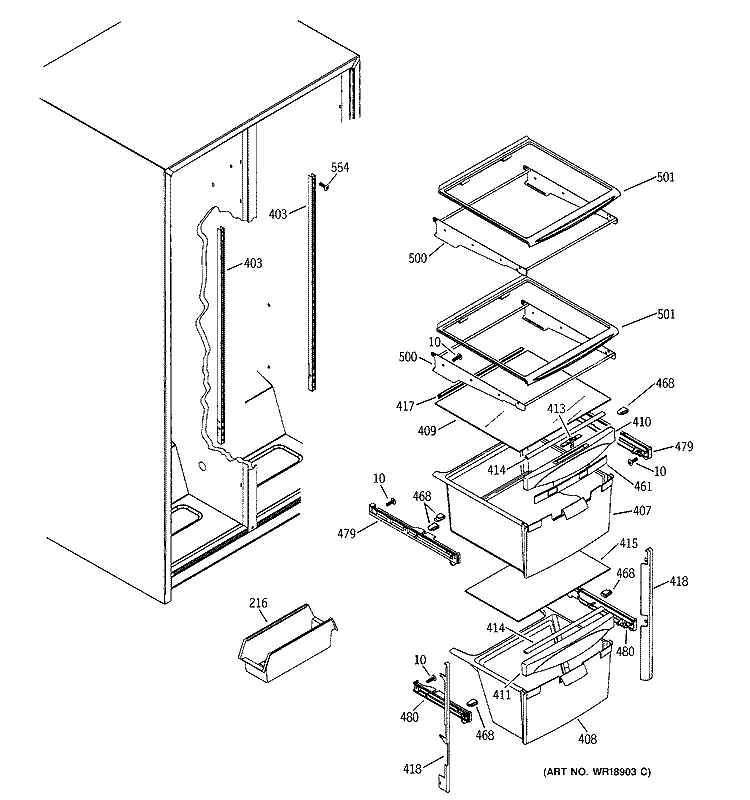 Part Location Diagram of WR02X10973 GE BUTTON SLIDE