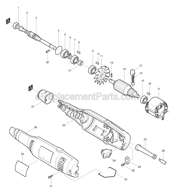 ?This is a genuine Makita replacement part that has been sourced from the original manufacturer to be used with die grinders. The plastic coupling fits between the armature shaft and the spindle to provide spacing between the bearings. This item is sold as an individual replacement part.