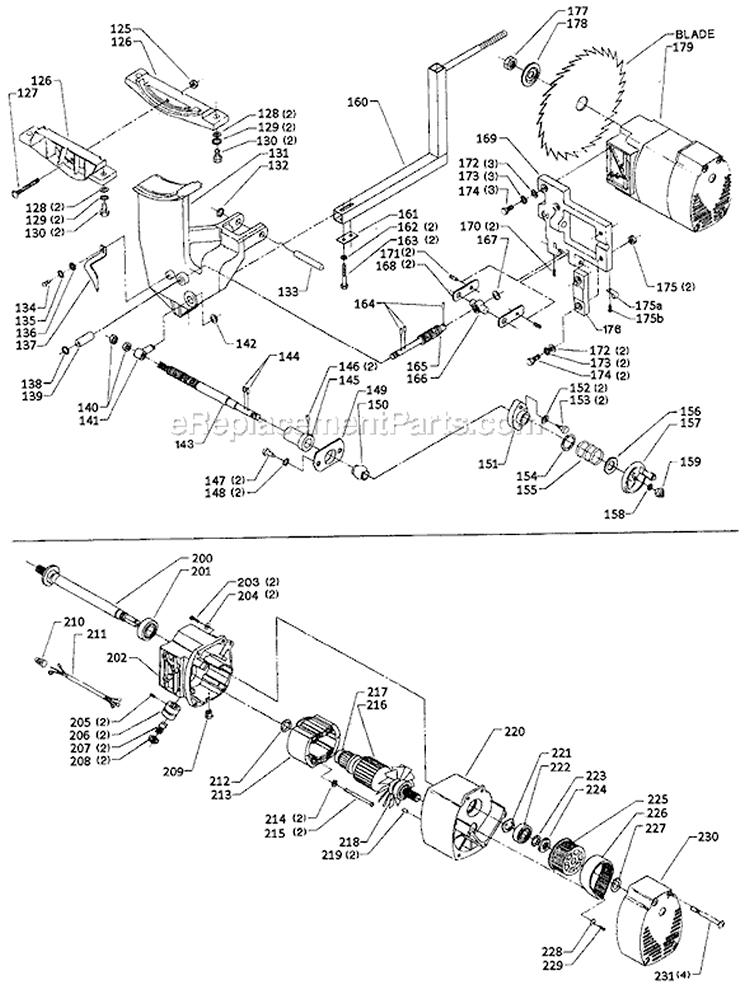?his item is available as an individual replacement part. The single-phase 15 amp motor attaches to the blade and the bracket. It may require a screwdriver and a wrench set to replace this motor which is made out of metal and plastic. This part is an original part from Delta for use in table saws.