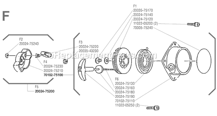 ?The starter pulley assembly is sold as a set that includes the e-ring, the reel, the pawl return spring, and the starter pulley. These authentic items are supplied directly from the original equipment manufacturer for use with power brooms, brushcutters, trimmers, and lawn edgers made by Shindaiwa. A set of pliers might be helpful during the installation of these parts. They are made out of metal and plastic and will need to be replaced if they break.